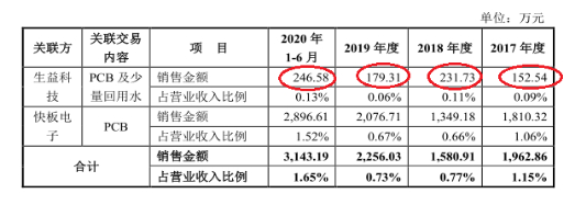 另据招股书披露,报告期内,生益电子向生益科技销售金额分别为152.54万元、231.73万元、179.31万元和246.58万元。
