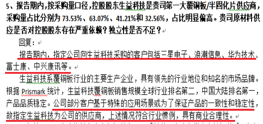 整个报告期内,生益科技既是生益电子的主要供应商,又是公司的客户,相关的交易是否真实?是否进一步影响了生益电子业务的独立性?都需要公司给出合理的解释。