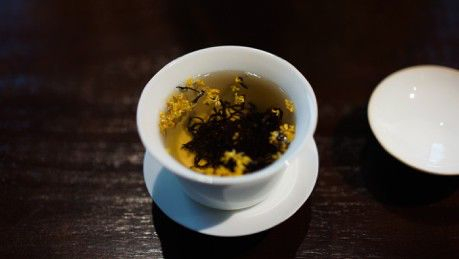朵朵桂花偶尔荡漾在茶汤的回旋中,齿舌间回荡着桂花的香甜与红茶的温润。