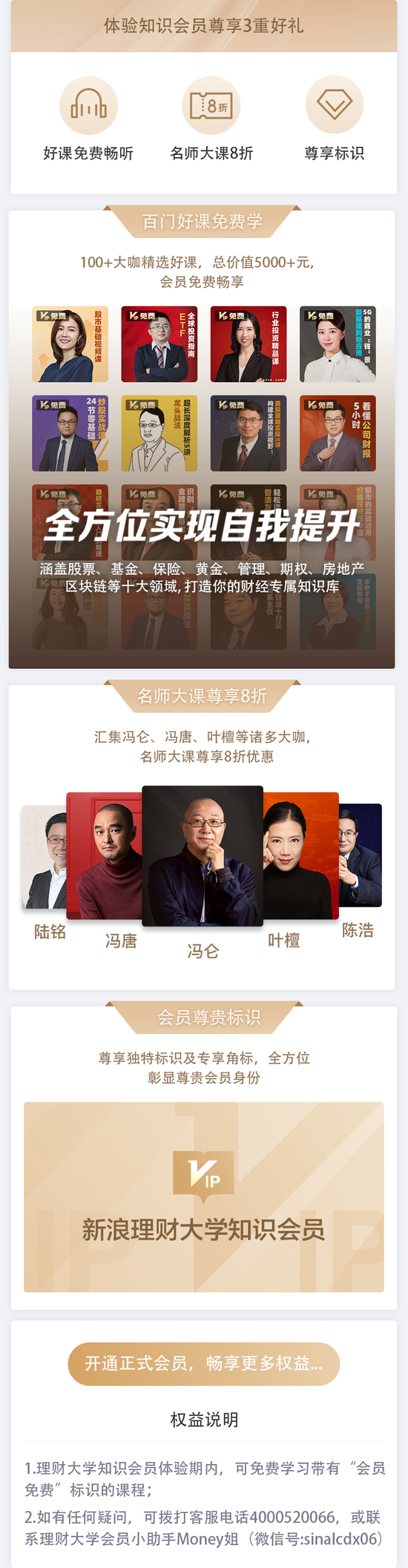 Tips:新用户可免费领取7天会员体验卡,有效期内畅享近百门精品好课,自领取之日起7天内有效,领取后可前往“新浪财经APP首页-理财大学-会员专区”挑选学习。