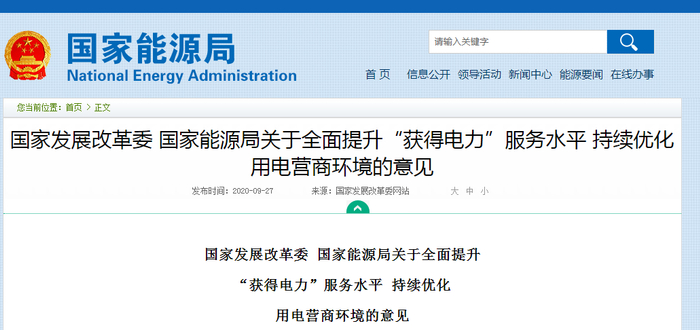 国际能源网记者了解到,全面提升“获得电力”服务水平是我国深化“放管服”改革、优化营商环境的重要措施和重要任务。此外,“获得电力”也是世界银行评测营商环境便利程度的一级评价指标之一,反映一个企业从申请用电到获得永久性电力连接所需的步骤、花费的时间和资金成本支出。