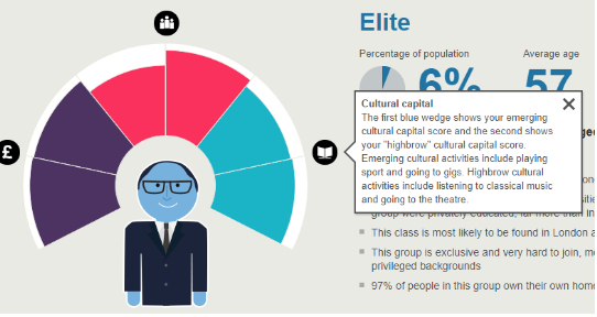 从上面可以看出,除了财富与交际圈是绝大部分国家会用于区分阶层的因素外,英国还同时考虑了文化活动类型。文化活动又分为了新兴文化活动以及更古老,传统意义上更高雅的highbrow文化活动。