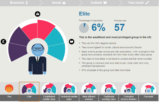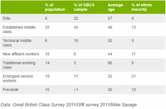 下图是英国的阶级划分,稳健中产属于第二梯队,除去最上层(Elite)就是这一群人了。