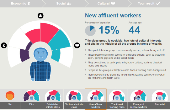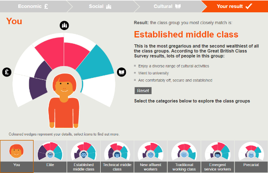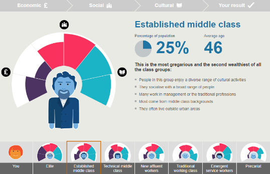 然而,如果保持其他条件不变,但文化活动方面什么都不选,那么结论就变成了established middle class,稳健的中产阶层。忙如马云,说不定真的几乎没有时间参加文化活动,所以马爸爸在英国也只能当中产啦!