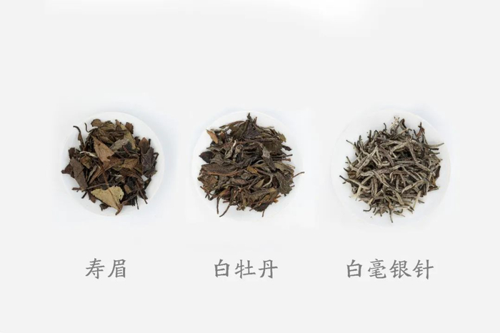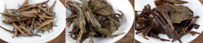 依次为白银毫针、白牡丹、寿眉叶底