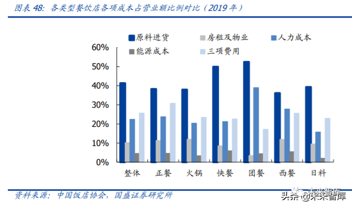 根据饭店业协会的数据,我们对各类型餐饮各项成本进行拆分,除去原料进货外,房租 及物业、人力成本均为餐饮成本中的重要组成部分。而复合调味料的应用将有助于缩减 厨房面积、降低人力成本,同时还会起到统一口味、提升运营效率的作用。尽管疫情对 餐饮渠道的冲击致 B 端复合调味品公司增长受阻,但是从长期来看,复合调味料可以有 效替代人工,因此疫情一定程度上加速了复合调味料在 B 端渠道的渗透。