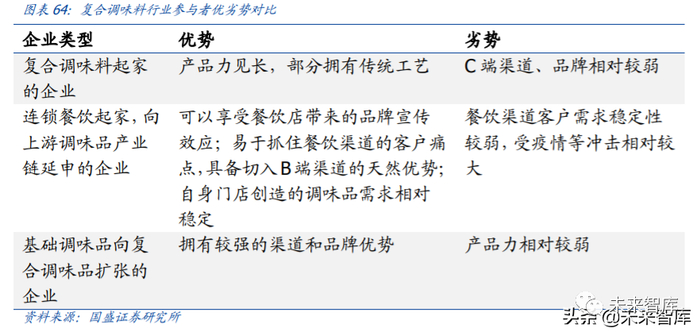 经过草根调研与分析总结,我们认为复合调味料的参与者主要有以下三类: