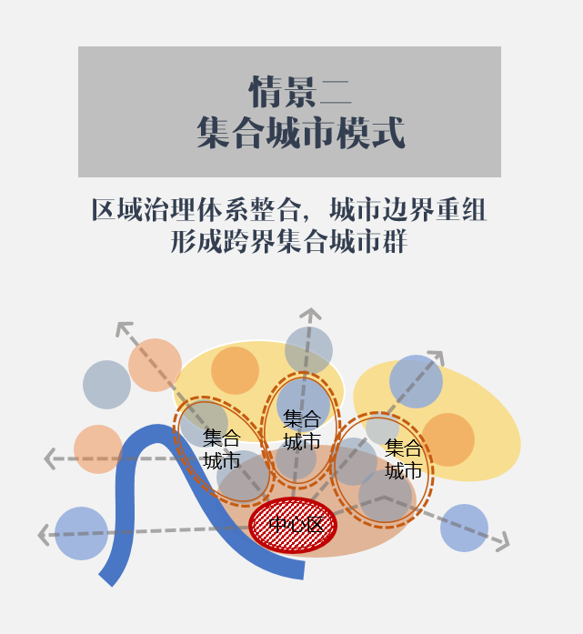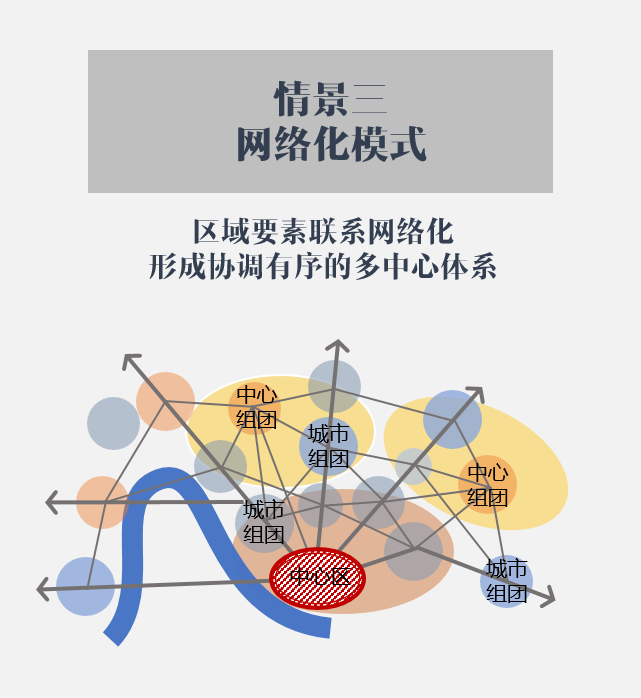 “深圳2050”打破了各层次行政边界的局限,兼顾了“离岸”与“在岸”的发展理念,将深圳置于不同空间视野中,比较大都市区空间结构的多情景方案: