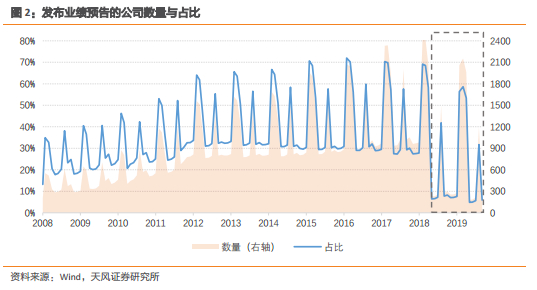 可以看到,由于中小板、创业板信息披露规则的变化,自2019年起,发布业绩预告的公司数量及占比明显下降。业绩预告能够提供的关于公司未来经营情况的信息显著减少。