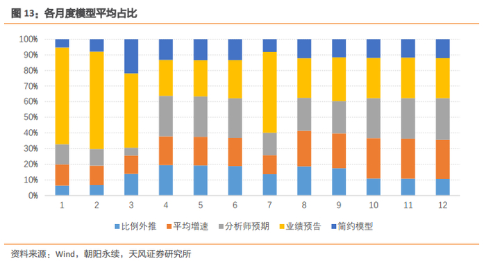 下图展示了各月度平均的模型占比,模型占比在月度之间呈现出较为明显的差异。