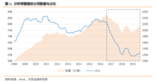 虽然业绩预告、分析师预期对于投资者来说是重要的决策参考,但是这两种来源的信息在减少。2019年起,由于交易所对上市公司业绩预告披露要求的变化,上市公司发布的业绩预告数量明显减少。而从2017年开始,由于机构投资者关注度的聚焦,分析师覆盖的股票数量也在减少。因此,对于越来越多的公司,投资者可能需要脱离公司业绩指引、分析师预期,根据自己的预判与模型形成盈利预测。这就使得系统化的公司盈利分析变得更加重要,同时,这些信息不对称的公司可能蕴藏着亟待挖掘的投资机会。