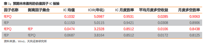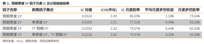 预期季度EP因子的IC均值为0.0524,年化ICIR为3.39,剔除单季度EP、TF预期EP(见《如何改善一致预期》)因子后,年化ICIR在2以上,具有显著的增量信息。
