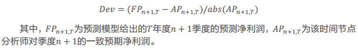 当偏离幅度高于10%时,则认为预测模型显著高估,以分析师一致预期季度盈利作为替代。(分析师一致预期季度盈利的计算方法见下节。)