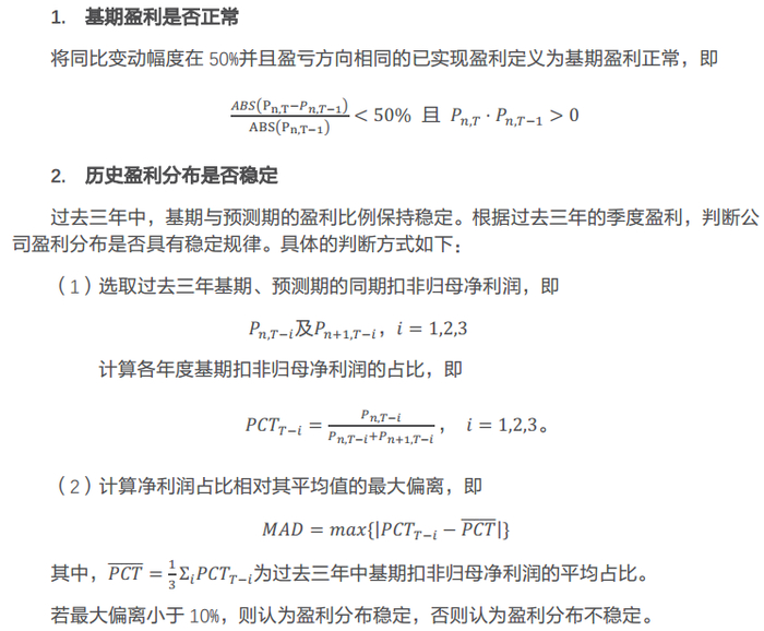 情形1(S1):基期盈利正常,且历史盈利分布稳定;