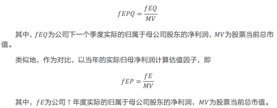 本章想通过一个很美好的“幻想”,以说明预期季度盈利的重要性。假设在每次企业发布正式财务报告后,投资者便可以提前一期知道未来季度的盈利水平。通过这个真实的季度盈利构建简单的因子。具体地,在T年度中的t日,获得个股已经公布的最新财报报告期,据此确定相应的下一个季度报告期。以下一个季度的实际归母净利润计算估值因子,即