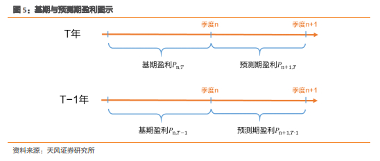 因此,需要从剩余期的预期盈利中分拆得到n+1季度的单季度盈利。假设n+1季度的单季度盈利占剩余期盈利的比例与上年保持一致,则预测期盈利为