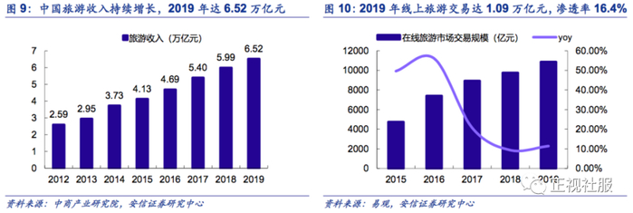 全国旅游收入近年来稳步增长,已从2012年的2.59万亿元到2019年的6.52万亿元,CAGR达14.1%。其中,以B2C为主的在线旅游市场来看,2019年的交易规模同样增至1.09万亿元/YoY+11.4%,线上渗透率达16.4%。与阿里签署协议后,众信有望凭借自身在产品、运营、分销等方面的经验,与阿里旗下强大的科技、互联网及大数据技术等优势相结合,打造出旅游产品全域分销平台,在进一步发掘旅游市场的同时亦将促进整体旅游行业的健康发展,未来合资公司若成功做大,预计有望显著为众信和阿里贡献权益利润。