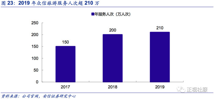 整合营销服务稳步推进,不断开发企业客户相关生态领域业务,提供多元化服务,持续为公司创收。众信博睿从众信旅游的商务会奖部门发展至今成为以活动公关策划为核心的整合营销服务平台,为客户提供一站式整合营销服务。众信博睿签约多家全球酒店集团、旅游局及航空公司合作伙伴,作为全球唯一的会展搭建商组织OSPI在中国境内的核心会员企业,拥有覆盖全球55个国家超过230家以上的会展行业合作伙伴网络。在维持自身优势业务领域会奖旅游的基础上,公司还继续开发企业客户相关生态领域业务,包括推出与BMW合作的高端自驾旅行产品项目、在爱尔兰、日本、美国等多地承办青少年高尔夫赛事、承办亚布力中国企业家论坛多个项目等,加速完善融合包括商务会奖、公关策划、品牌管理、展览展示、差旅服务、跨境商务对接等业务在内的整合营销服务体系。2019年众信博睿策划执行1000人以上活动50+场,服务1000+家优秀企业及政府机构,服务人次50万+,全年单次服务最大项目6000人次。