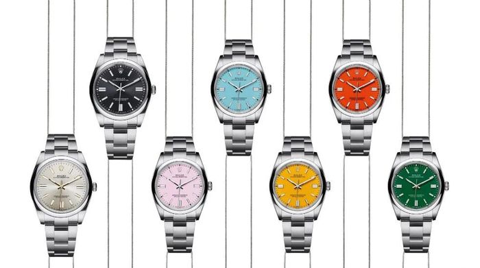 新款蚝式恒动型36色泽鲜艳灵动,备有五款漆面表盘颜色供选择。