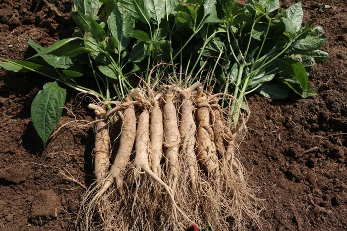 产出的人参,年分足,个头大,人参芦头饱满,根须部位布满了营养丰富的珍珠点,用刀一切嘎嘣脆,肉质皎白肥厚,浆液充足。