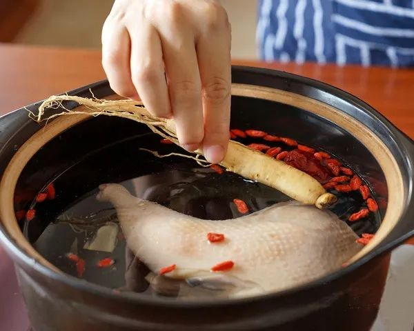 鲜美的参香,可以巧妙地融合在各种膳食当中:参鸡汤无疑是完美的演绎,越炖越醇,越熬越鲜。喝一碗元气满满,从头暖到脚。