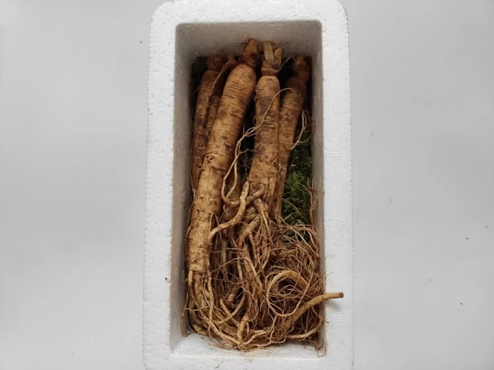 为了保湿和提供氧气,挑拣称重后,带着土放入铺着苔藓和冰袋的快递箱中,第一时刻地新鲜封锁,因此人参表面沾有泥土是正常现象。