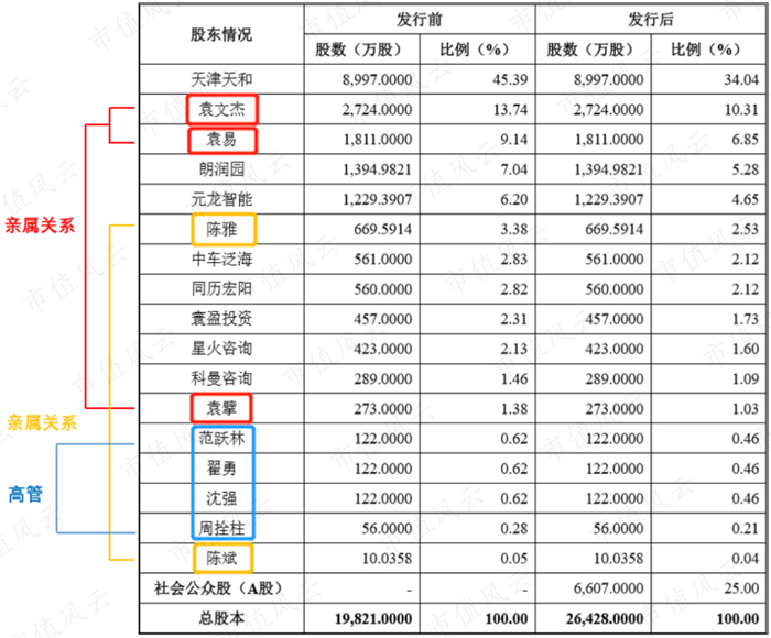 2017年起陆续引入部分外部股东,2018年12月天和磁材完成股改。公司实际控制人为袁文杰父子(袁文杰为袁易和袁擘之父),通过直接和间接持股合计持有天和磁材69.65%股份。