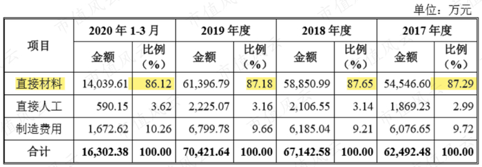 另外,天和磁材对外销售的钕铁硼毛坯比钕铁硼成品少了中间工序的人工、折旧和制造费用,因此镨钕、镝、钕等稀土金属原料在天和磁材营业成本的比重高达86%~88%,比一般销售钕铁硼成品的公司高。