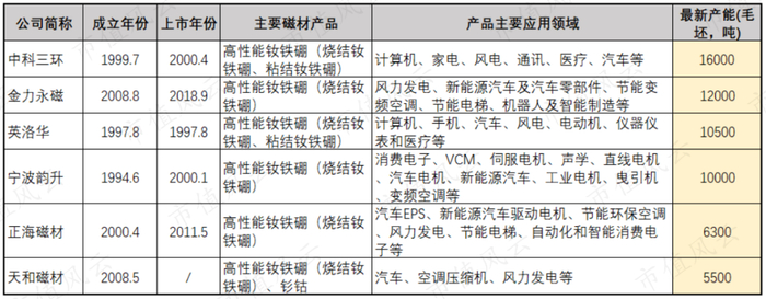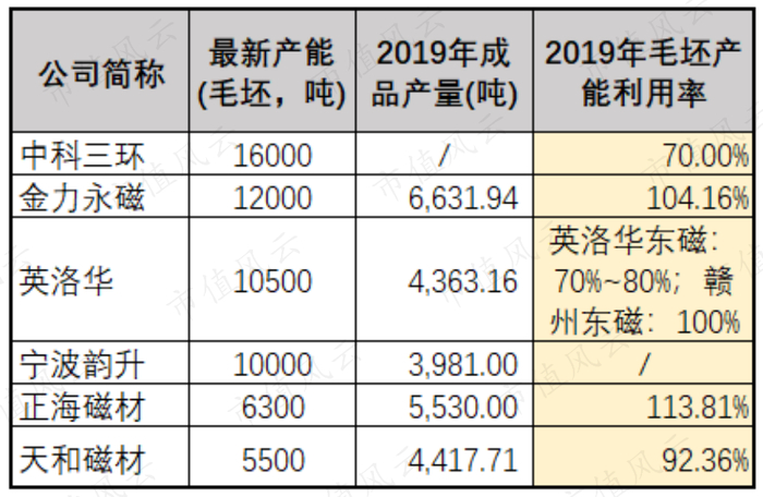 不过,若以各公司已披露的最新产能来进行排序,天和磁材还排不进行业Top5。