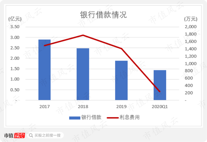 这样的策略是有效的,2020年3月末公司的长期借款为1.44亿元,仅为2017年末长期借款金额的一半。2018年起公司的利息费用也有所下降。