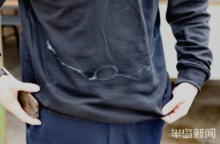 检测工作人员周文旭好几天没有回家换洗衣物,脱下“捂汗”的防护服后,衣服上布满了汗渍“地图”。