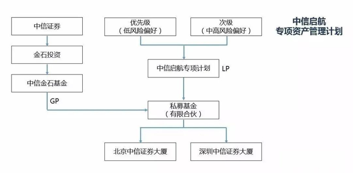 中信证券旗下中信金石基金任GP与专项计划为LP设立有限合伙企业,以收购北京中信证券大厦于深圳中信证券大厦。
