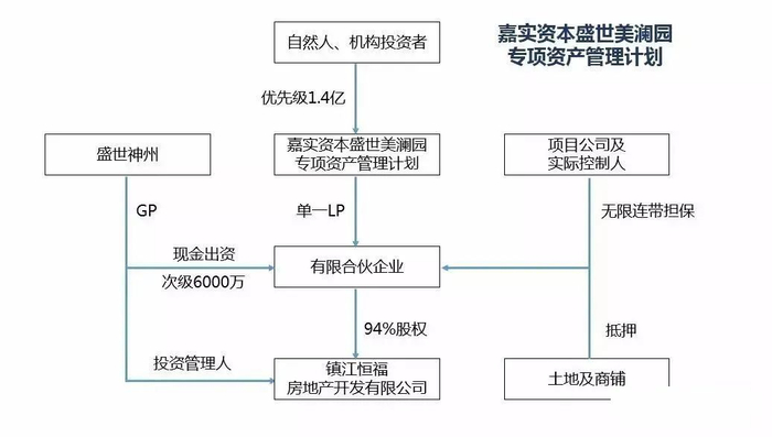 社会投资人认购“嘉实资本盛世美澜园专项资产管理计划”,募集1.4亿优先级资金,嘉实资本作为管理人。