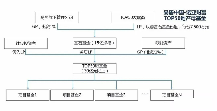 由TOP50房地产商作为LP认购基石基金份额,每份7,500万元,最高不超过2亿元;易居中国旗下管理公司担任GP,持有基金1%股份。