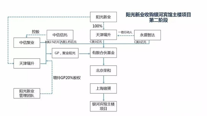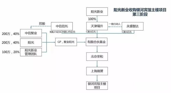 中信信托通过控股的中信聚业和阳光新业设立有限合伙,聚业阳光作为GP与阳光兴业控制的天津瑞升、中信信托和一直行动人永盛智达为LP设立有限合伙基金。