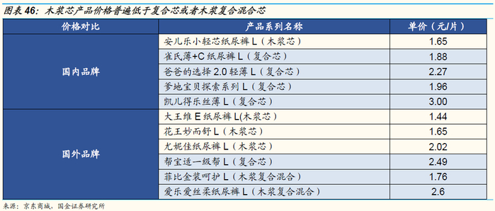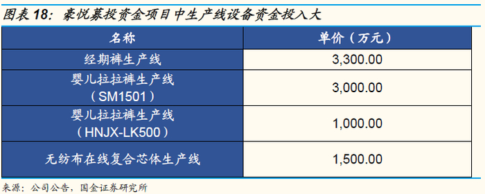 复合芯纸尿裤是基于“技术路线”改变带来的“升级类”产品,公司短期享受技术“溢价”,中长期享受成熟度提升带来的规模化成本优势。产品价格比较角度,无论是国际品牌还是国产品牌,复合芯类纸尿裤单价是木浆芯类纸尿裤单价的1.2-1.8倍。随着产品升级趋势渐显,我们认为短期内豪悦有望凭借技术与工艺先发优势获取更多的技术“溢价”,获得与下游客户的深度绑定;中长期随着技术的成熟,有望凭借制造端的规模化优势,提升毛利率水平。