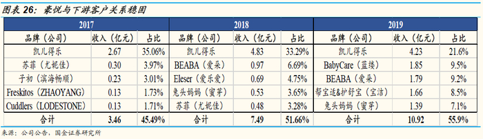 凭借优质的供应链优势,成功实现从小品牌到多类型客户矩阵的构建。公司在业内逐步积累了较多的优质客户,不仅包括凯儿得乐、蜜芽、BEABA、BabyCare等国内新零售品牌,还包括宝洁、金佰利、尤妮佳等全球著名跨国公司。