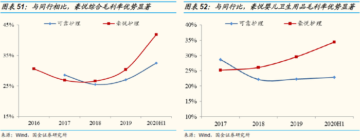信息化管理优化排单,提升设备利用效率。由于纸尿裤类产品库存占用较高,场地资源有限,公司通过信息化管理优化排单,有序安排物料采购、生产和物流周转,减少库存占用,提升固定资产利用效率。2019年公司综合毛利率为30.4%,其中婴儿卫生用品毛利率为29.6%,较同行优势显著。