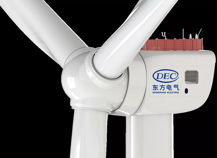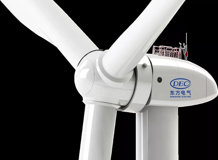 东方电气DEW-D5.5S-172永磁直驱风电机组针对国内陆上中高风速区域开发,单机容量5.5-5.8MW可调,叶轮直径172米。