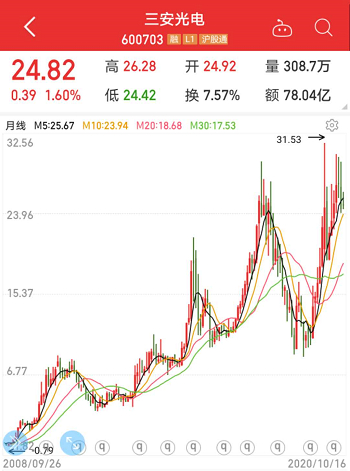三安光电成十三年来最强牛股,涨幅高达67倍。