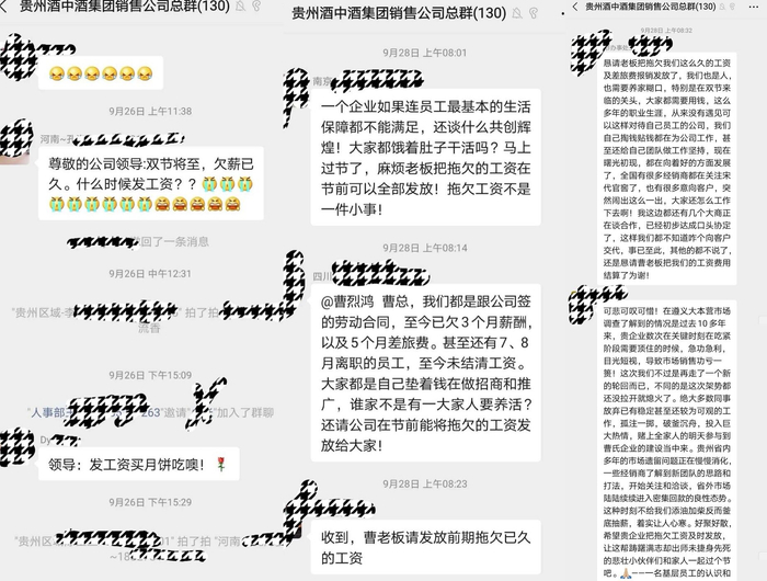 公众号发文直指酒中酒拖欠员工薪酬以及差旅费,员工曝光内部群聊内容。目前,