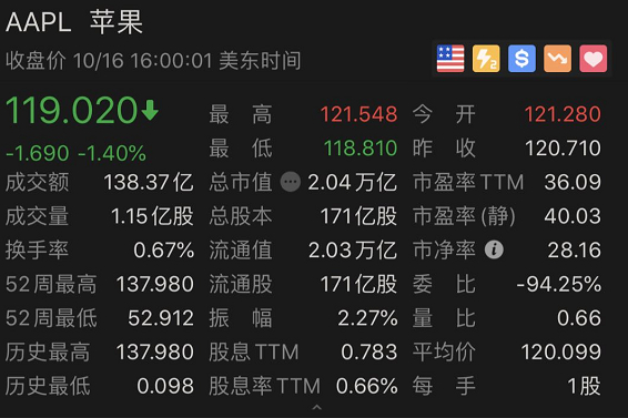 而苹果公司在iPhone 12面市后也表现不佳,昨晚再度下跌了1.4%。