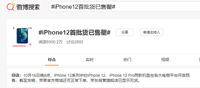 iPhone 12有多火,昨天预售后,iPhone 12首批货售罄的消息冲上热搜。
