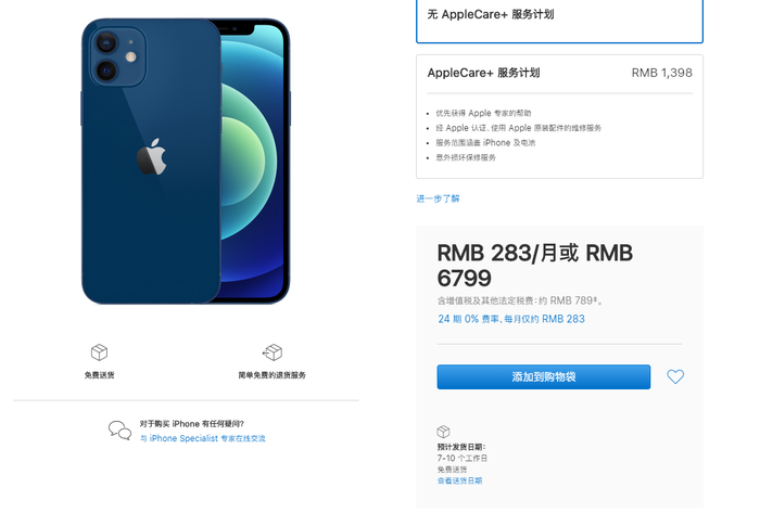 此外,苹果官网和苹果天猫店对新机进行了限购,每款机型人均限购两部。电商平台只是购买iPhone 12的途径之一,消费者还可以直接选择预约到店取货,在苹果实体店现场购买。