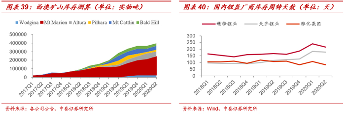 国内锂盐厂Q2开启去库:从主流锂盐厂商库存周转天数来看,一季度由于疫情原因,库存被动增加,二季度生产商库存周转天数开始下降,其中赣锋锂业库存周转天数由239→217,天齐锂业库存周转天数由183→177,雅化集团库存周转天数由107→83。