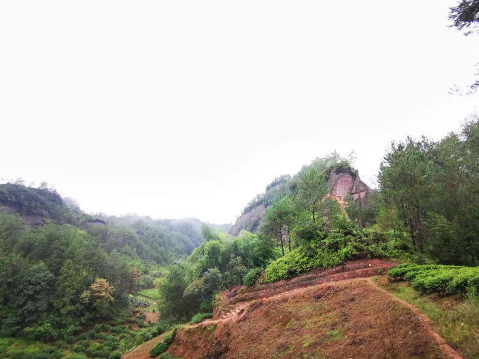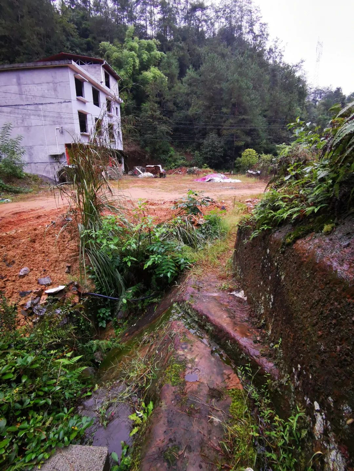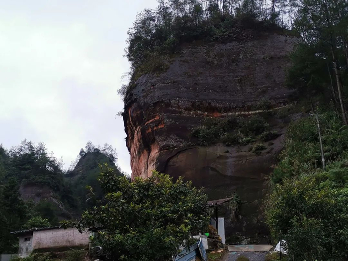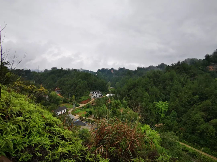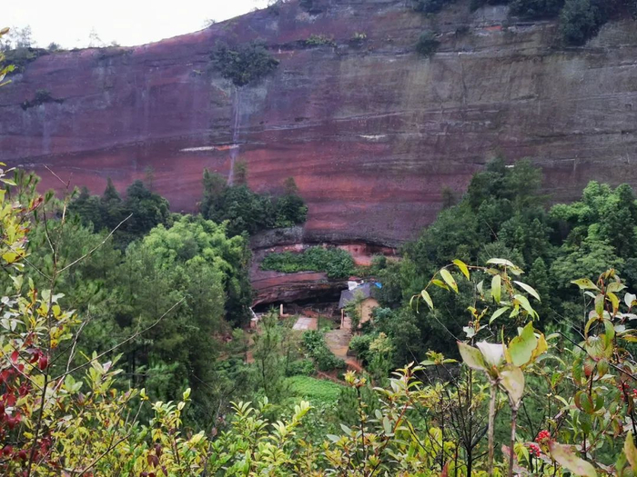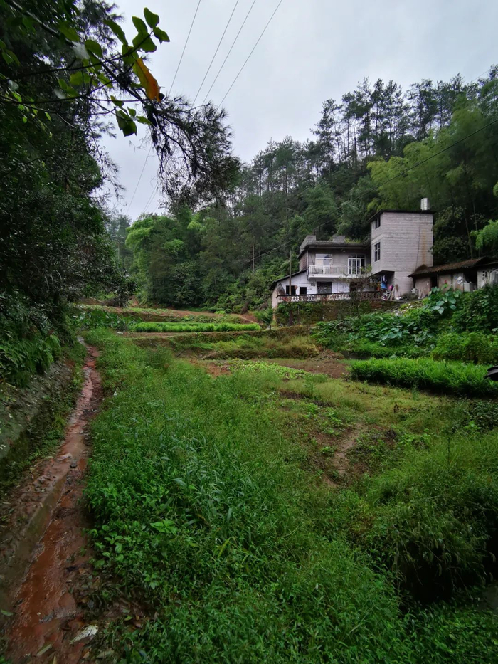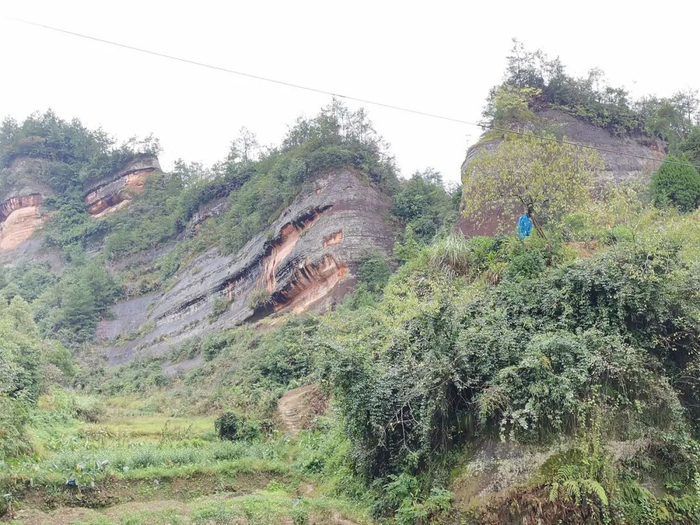 沿着女儿寨北侧向下,为山间盆地,遍布耕地,彷佛为世外桃源。而山崖下的竹林和牛棚遗迹,揭示这曾经是一个老屋场。