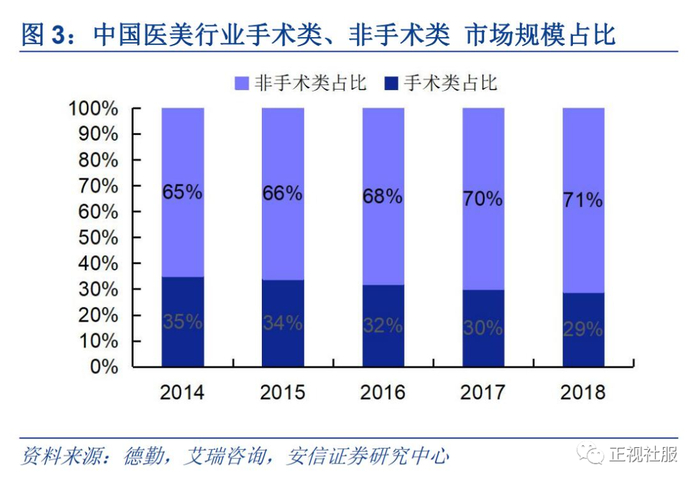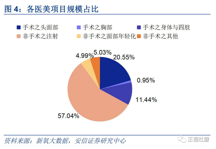 1. 微整形市场正兴,玻尿酸和肉毒素注射类项目占据主要地位