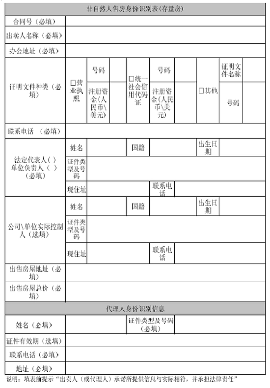 - 非自然人售房身份识别表(存量房)
