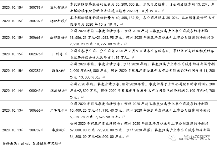 上周调研及报告:【公司点评】圣邦股份:2020Q3业绩指引亮眼,模拟芯片龙头加速腾飞;【公司点评】卓胜微:2020Q3业绩指引超预期,射频龙头加速成长;【周观点】中芯国际被列出口管制对半导体产业链影响分析