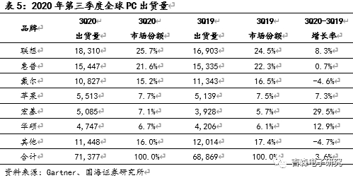 另一方面,受惠于新冠肺炎疫情衍生的宅经济需求,电视与笔电销售不减反增,需求热络使第3季电视面板单季突破30%的涨幅;展望第4季,即使面板报价持续升高,但仍预期品牌业者会持续买进面板、建立库存,以面对诡谲的市场变化。